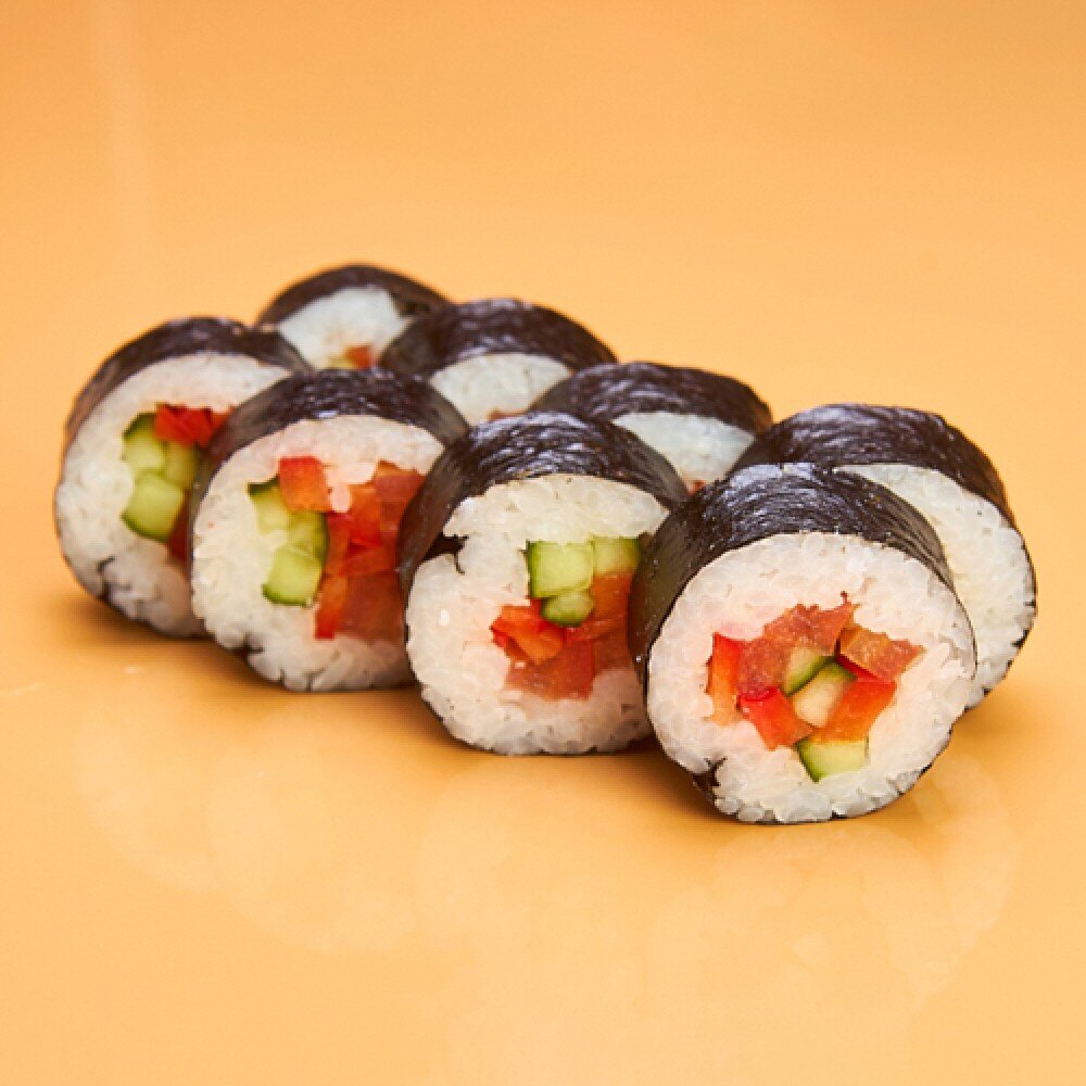 Ролл со свежим болгарским перцем, огурцом и помидором.